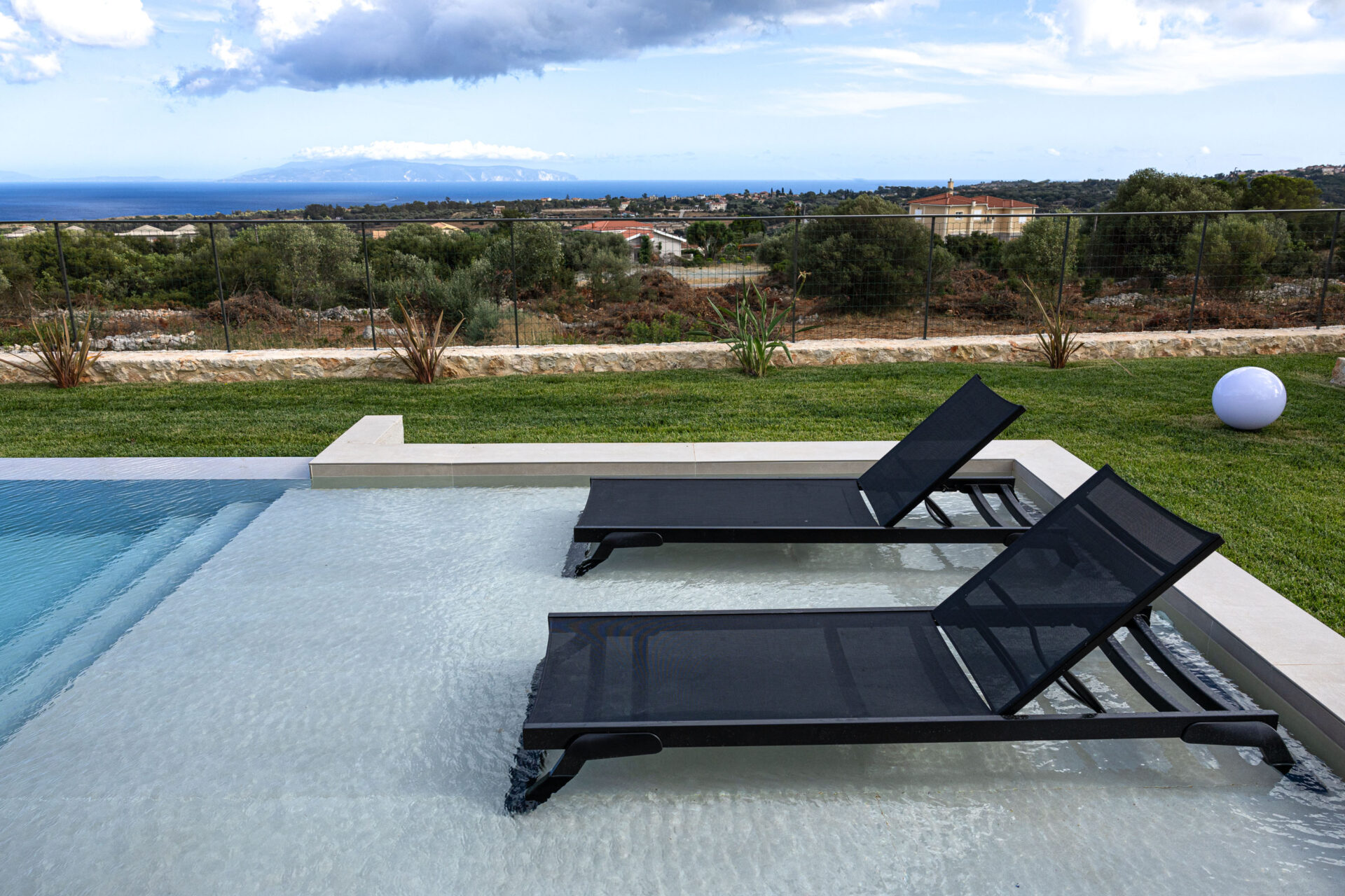 The covered terrace is an ideal spot for outdoor dining or simply enjoying the serene atmosphere. The centerpiece of Villa Garnet is its exquisite infinity pool, which provides stunning views of the Ionian Sea. The terrace and pool area offer a perfect setting for sunbathing, reading, or taking a refreshing dip while admiring the beautiful landscape.
